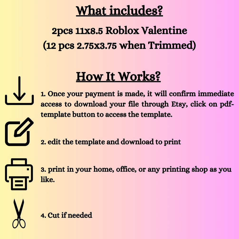 buy this and you will get 12 pcs canva template roblox classroom valentines card