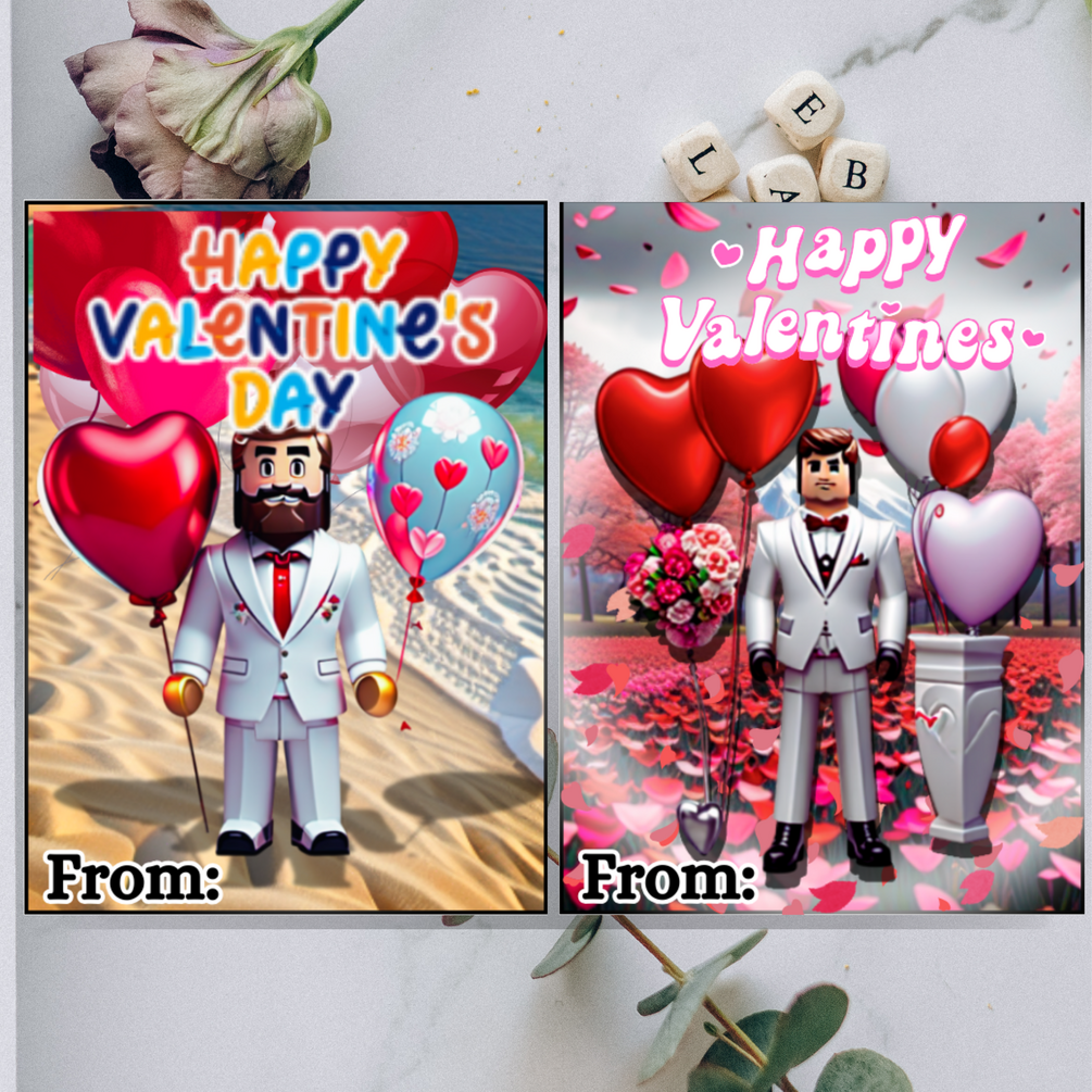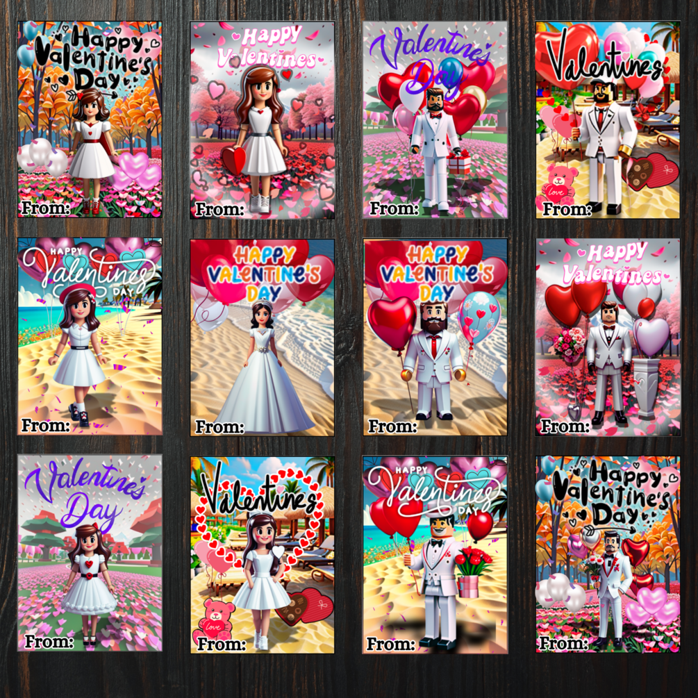 Roblox Classroom Valentines Card Printable, Roblox, White suit and dress Roblox, Women girl Roblox, Boy men Roblox, Canva Tmplate, Rivotent